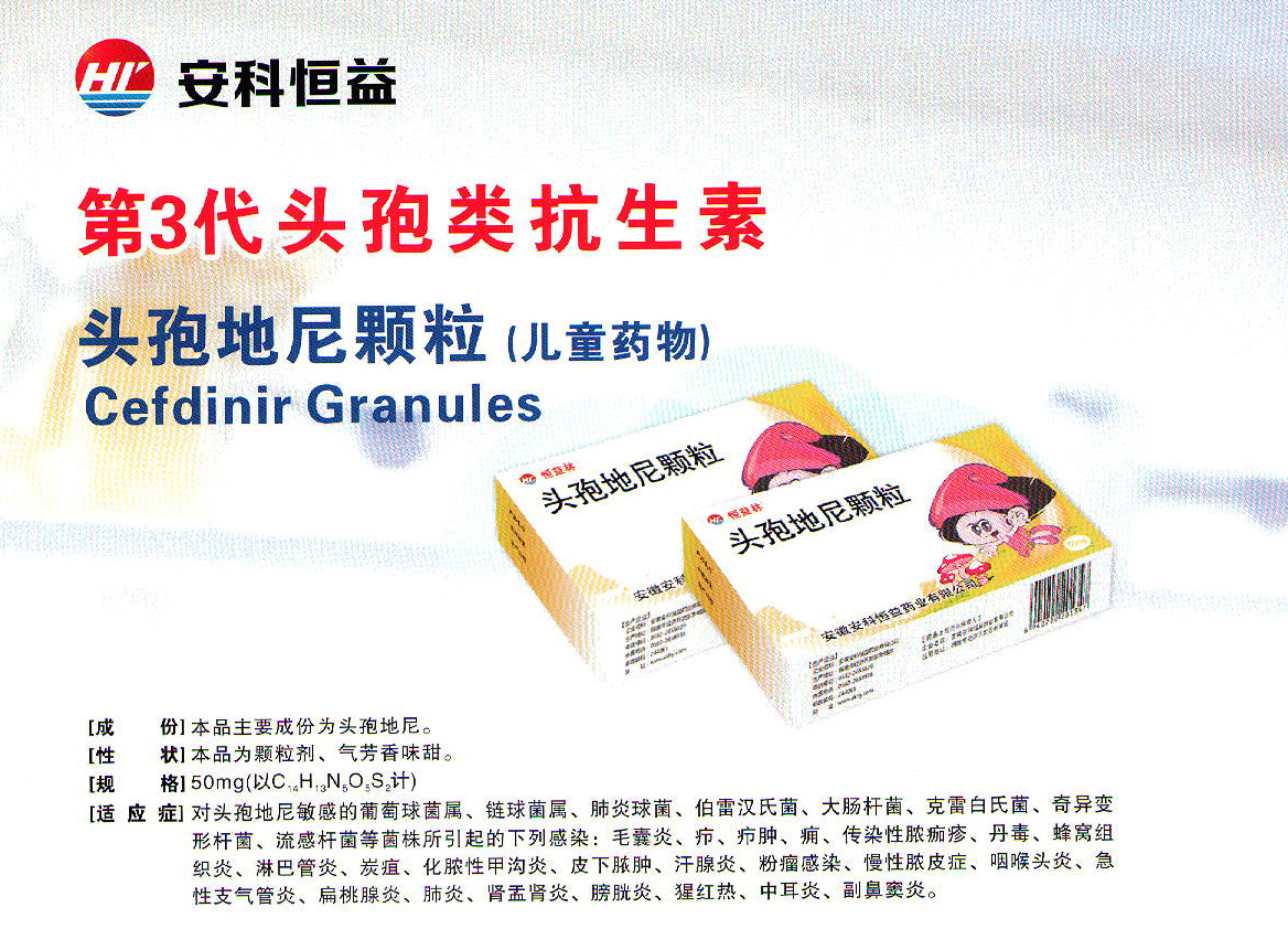 頭孢地尼屬于第3代頭孢菌素類抗生素,原研為日本藤澤藥品工業公司。本品具有抗菌譜廣、抗菌作用強、臨床療效高、毒性低、過敏反應少等特點,該產品適用于對頭孢地尼敏感的葡萄球菌屬、鏈球菌屬、肺炎球菌、消化鏈球菌、丙酸桿菌、淋病奈瑟氏菌、卡他莫拉菌、大腸埃希菌、克雷伯菌屬、奇異變形桿菌、普魯威登斯菌屬、流感嗜血桿菌等菌株所引起的一系列感染。
