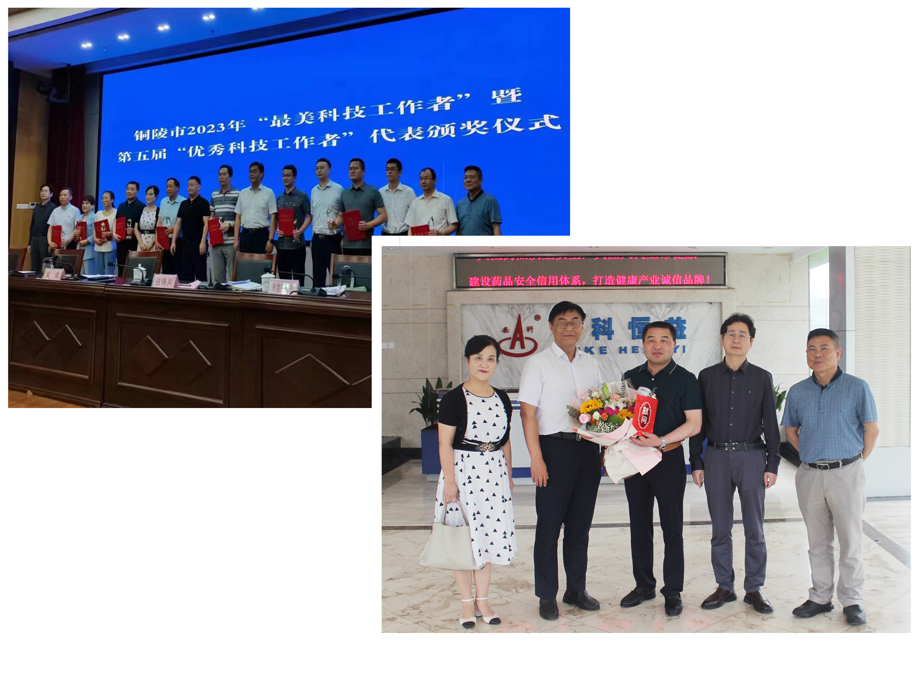 2023年5月30日上午,銅陵市副市長吳強先生一行來到公司,為2023年“最美科技工作者”——公司總經理朱衛兵先生頒獎。吳強副市長對朱衛兵先生獲得此次“最美科技工作者”表示了祝賀,并在會議室聆聽了公司2022年經營業績及公司研發、新藥銷售等情況,對公司發展與個人成長所取得的成績給予了充分的肯定。2023年3月銅陵市科協組織開展了2023年銅陵市“最美科技工作者”暨第五屆銅陵市“優秀科技工作者”推薦評選活動。經相關部門、縣區科協、在銅高校、企事業單位推薦,由 “最美科技工作者”暨第五屆銅陵市“優秀科技工作者”,評委會經過充分討論醞釀及集中評審、差額投票,評選出10名同志為2023年銅陵市“最美科技工作者”、30名同志為第五屆銅陵市“優秀科技工作者”。該次評選自3月份啟動,受到社會各界廣泛關注,市直相關部門、基層科協組織、企事業單位、全市各學會精心組織,廣泛動員、積極申報推薦,在全市范圍營造尊重勞動、尊重知識、尊重人才、尊重創造的濃厚氛圍。朱衛兵先生獲得此項榮譽展現了個人良好的形象和精神風貌,也增強了公司科研工作人員的責任感、榮譽感、認同感,在以“最美科技工作者”和“優秀科技工作者”為榜樣同時,將積極為公司的經營、研發工作不斷提升,貢獻出更多的力量。