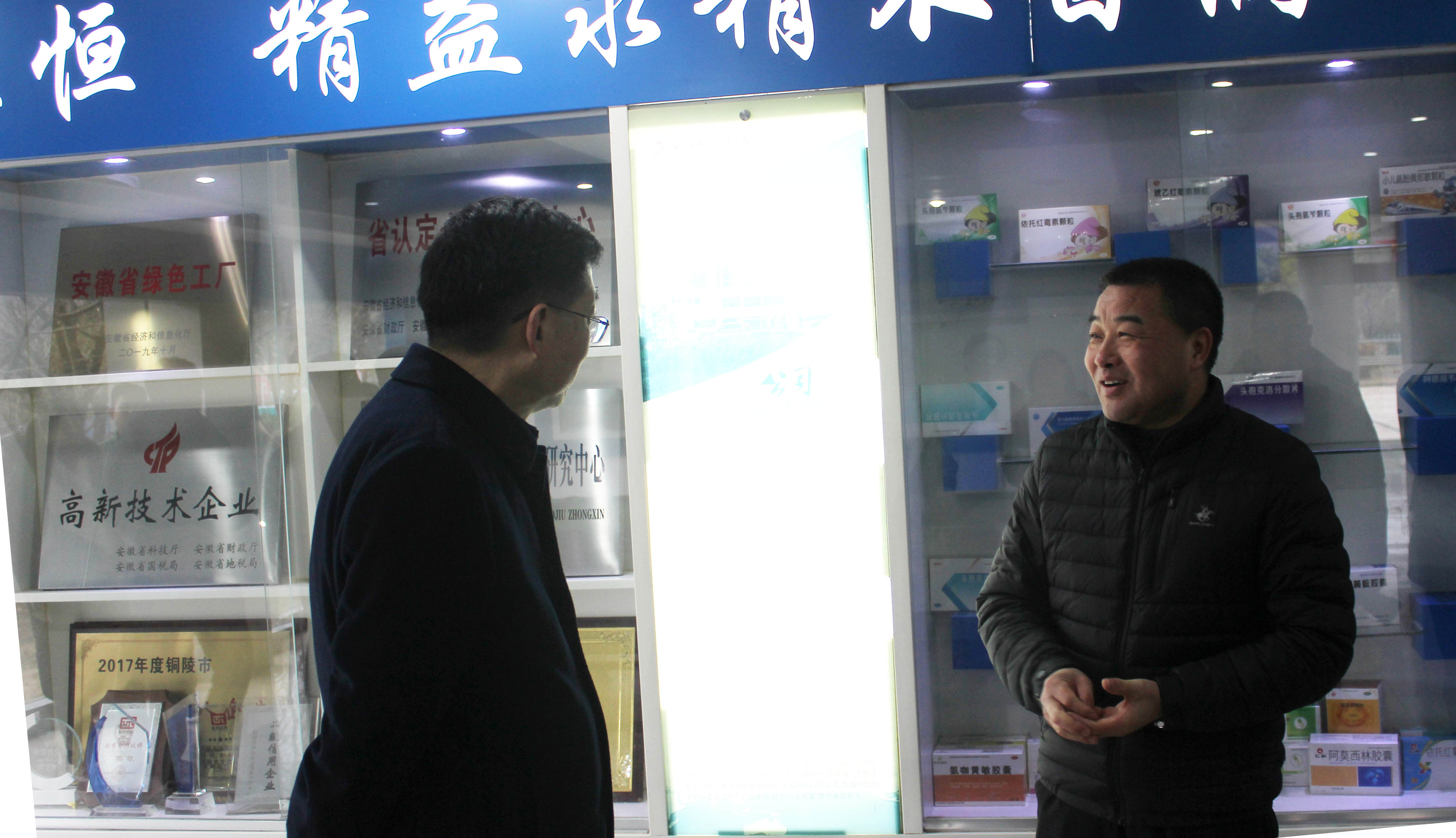 在公司會(huì)議室,朱衛(wèi)兵總經(jīng)理向劉亞東主席一行介紹了企業(yè)近幾年研發(fā)品種、仿制藥、大健康產(chǎn)品品種建設(shè)等方面情況,并就企業(yè)存在的新產(chǎn)品增加后倉庫庫容不夠、擴(kuò)品招商等建議與劉亞東主席進(jìn)行了交流。
